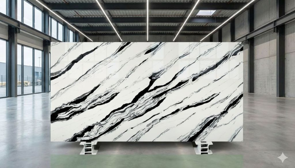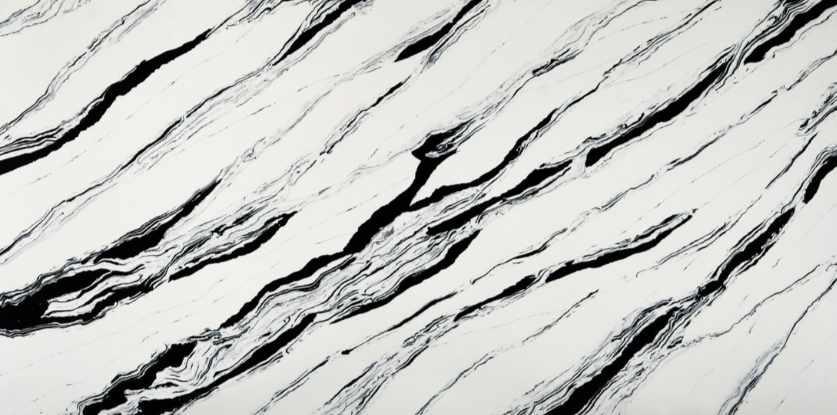 This striking quartz surface features bold black veining across a crisp white background, creating a dramatic and contemporary look. Perfect for making a statement. The high contrast between the black and white tones adds a touch of sophistication and luxury while providing all the benefits of durable, easy-to-maintain quartz. Ideal for adding a sleek and stylish touch to any space