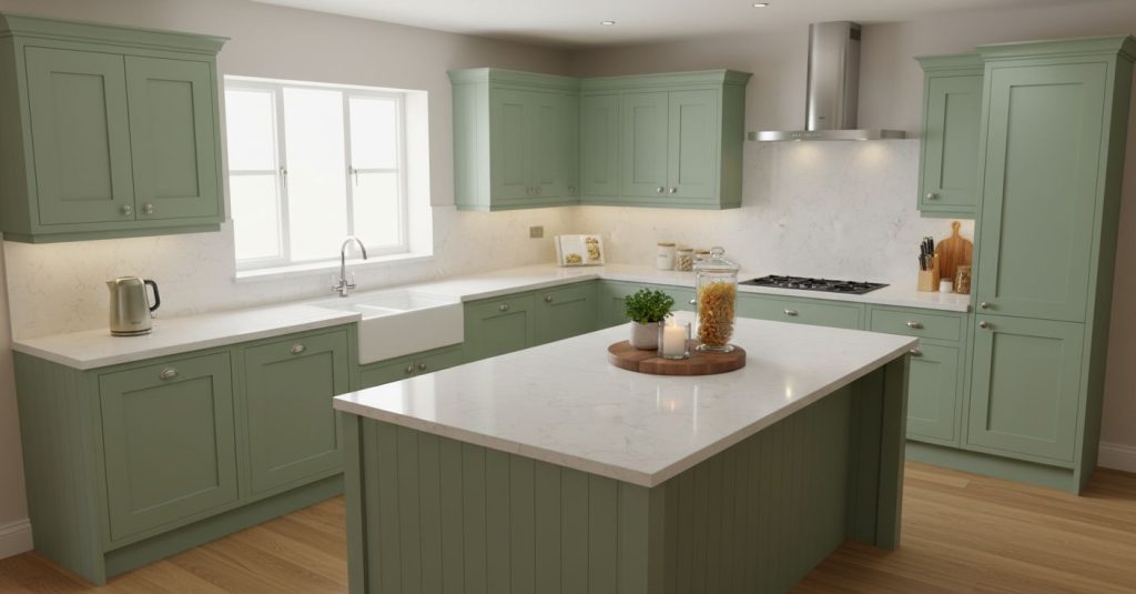 L-Shape Worktop PLUS Island, upstands & wide splashback plus sink & hob cut out. Includes laser template, delivery and installation
